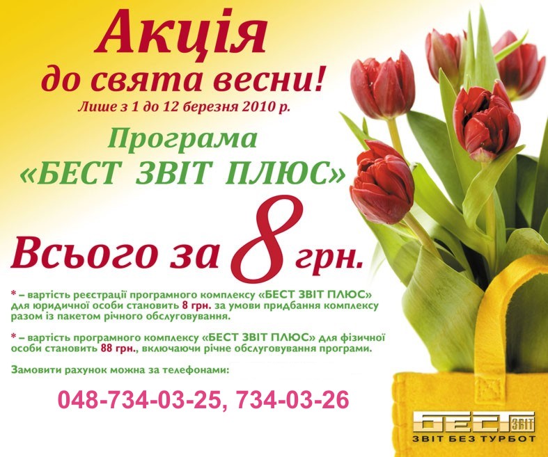 БЕСТ ЗВIТ ПЛЮС - Акцiя до Свята весни