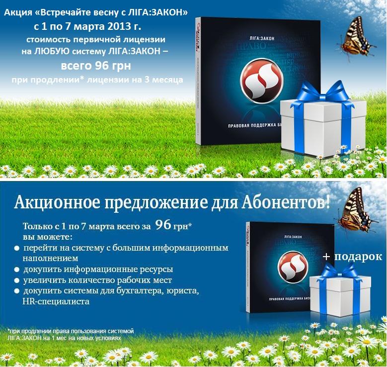 Компания «Форт.Одесса» сообщает Вам о проведении акции «Встречайте весну с ЛІГА:ЗАКОН»