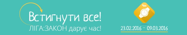 *для клієнтів, у яких сума рахунку за придбані продукти ЛІГА:ЗАКОН перевищує 3000 грн. Розіграш відбудеться 15 березня 2016 року, оголошення переможців – 22 березня.