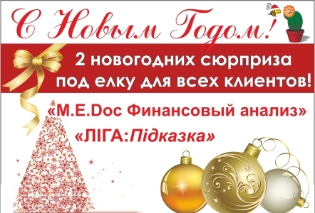 С 24 декабря 2012 года до 31 января 2013 года ООО "БЭСТ" проводит акцию! Для всех клиентов, и для новых и для тех, кто уже использует систему электронного документооборота «M.E.Doc», Новогодний сюрприз: - 3 месяца бесплатного пользования модулем «Финансовый анализ», а также - новая возможность «Ліга:Підказка».